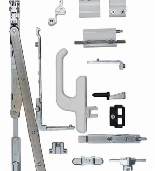 Для комплектации окон используется несколько десятков видов основной фурнитуры и еще дополнительные элементы. Все элементы изготавливаются по блочному принципу, в их состав входят: