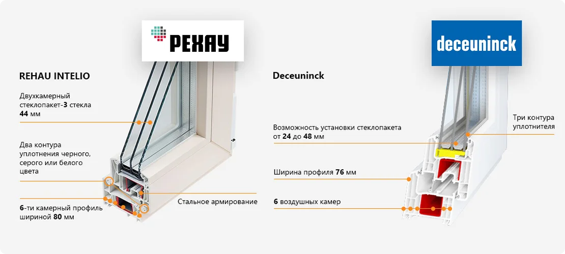 Пластиковые окна выпускают различные производители. Продукция разных брендов различается качеством, техническими и эксплуатационными параметрами, дизайном и стоимостью. Поэтому заказчику бывает сложно разобраться в обширном ассортименте. Сегодня мы выясним, что лучше окна Deceuninck или Rehau, в чем заключается принципиальная разница. Для этого проанализируем основные характеристики, сравним их и сделаем вывод. Отметим, что эти бренды производят профильные системы, которые являются основой оконной конструкции.