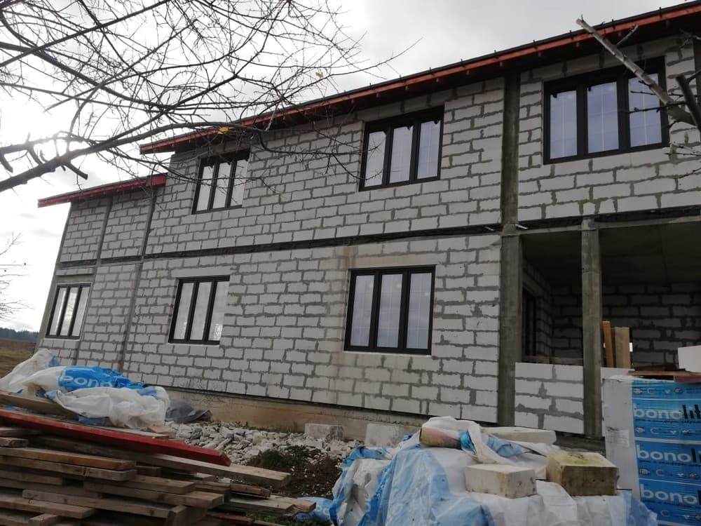 Выполненные работы: Установлено 12 окон и одна PSK Система, Внешняя ламинация изделий в цвет, профильная система REHAU Delight, Противовзломная фурнитура ROTO NX, Стеклопакет 40 мм с i-стеклом
